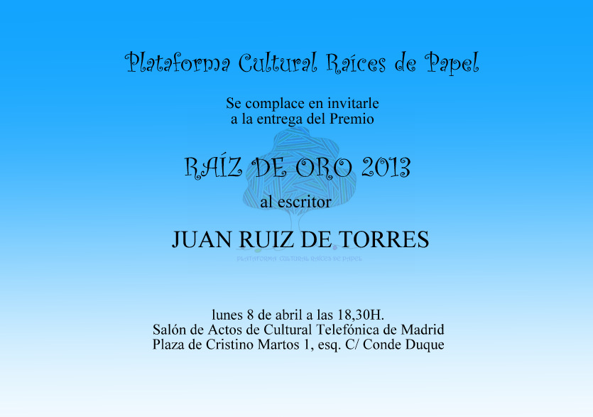 Plataforma Cultural "RAÍCES DE PAPEL" / Convocatorias, Presentación de Libros, Actos Literarios, Noticias.